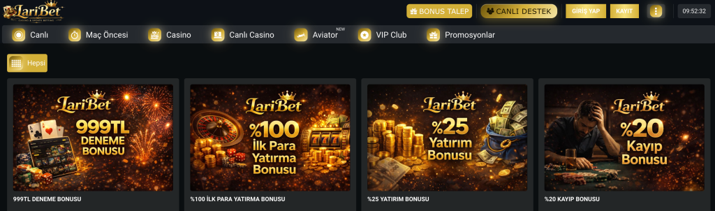 Kullanıcılar Laribet bonusları için oyunları oynamalıdır. Ne kadar sık bahis sitesine giriş yaparsanız o kadar fazla bonus kazanabilirsiniz. Üyelik bonusu, hoşgeldin bonusu, deneme bonusu ve kayıp bonusu gibi çeşitli bonuslar kazanmanız mümkün. Bu bonusları kazandığınız zaman belli süre içerisinde mutlaka kullanmanız gerekiyor. Aksi durumda hesabınızdan otomatik olarak silinir.